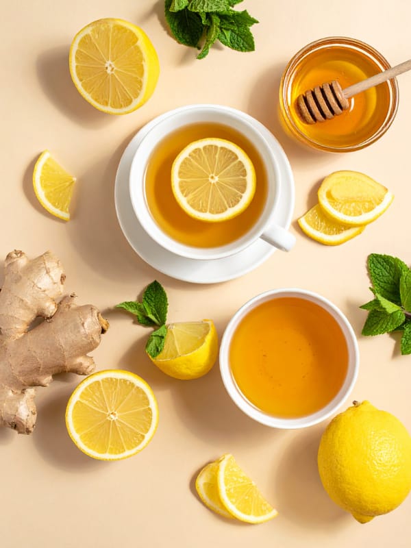 Instructions: Heat water to simmering. Add lemon juice, ginger, cinnamon, and salt. Cover and steep 3-5 minutes. Stir in honey when water has cooled slightly (this preserves the beneficial enzymes in the honey).